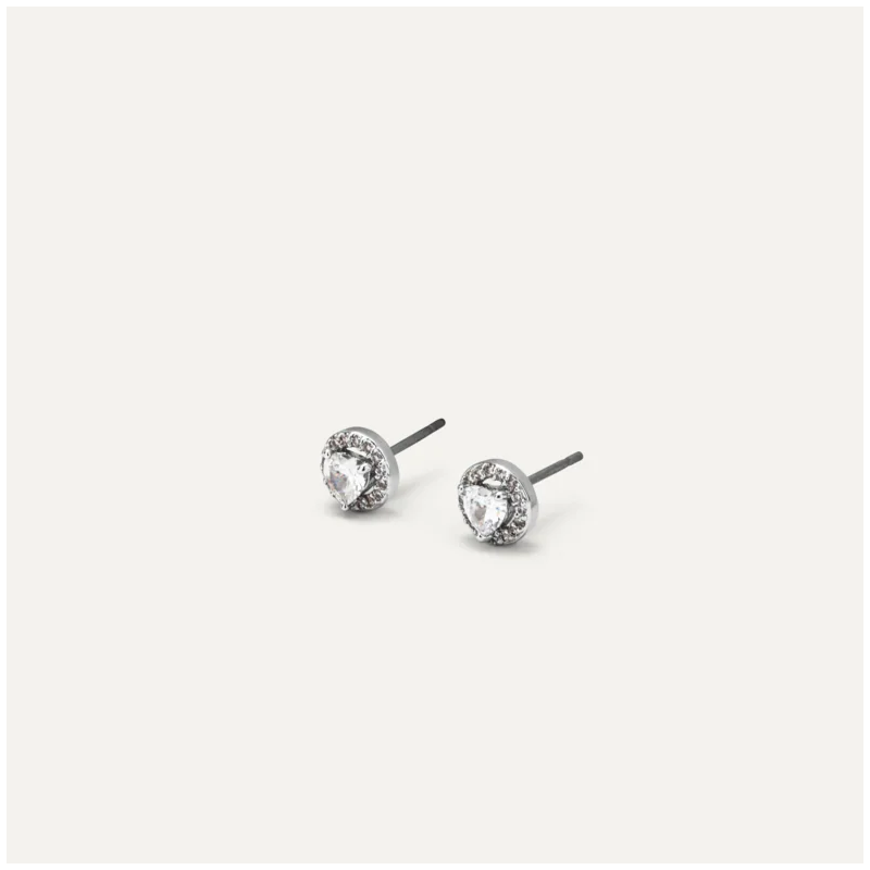 Orecchino a lobo con pietra centrale a forma di cuore e corona di piccoli zirconi.