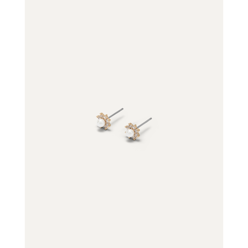 Orecchino a lobo in ottone con zirconi e perla.