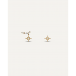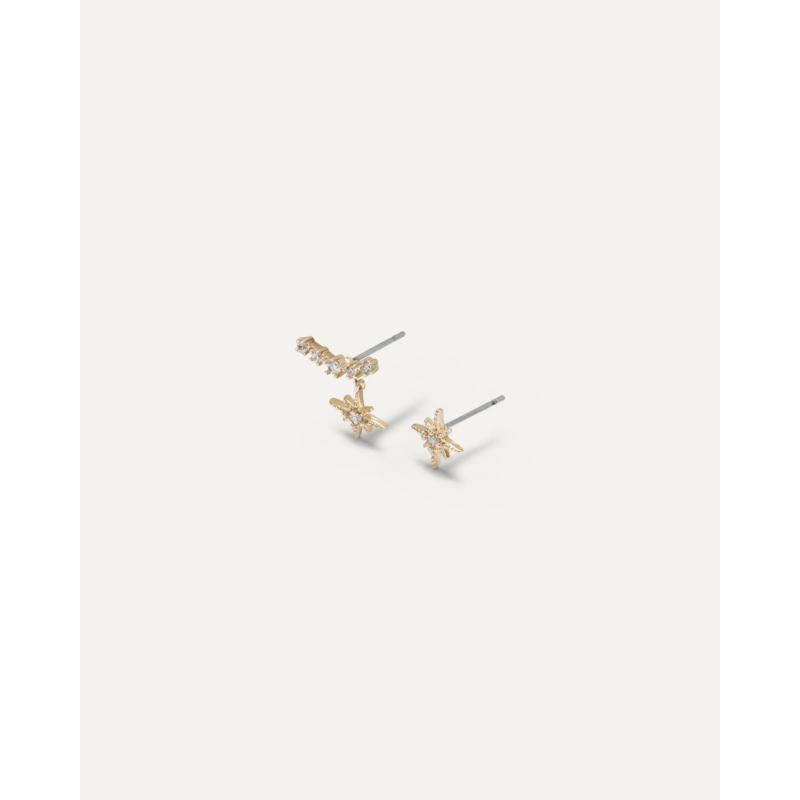 Orecchino a lobo in ottone con zirconi e pendente.