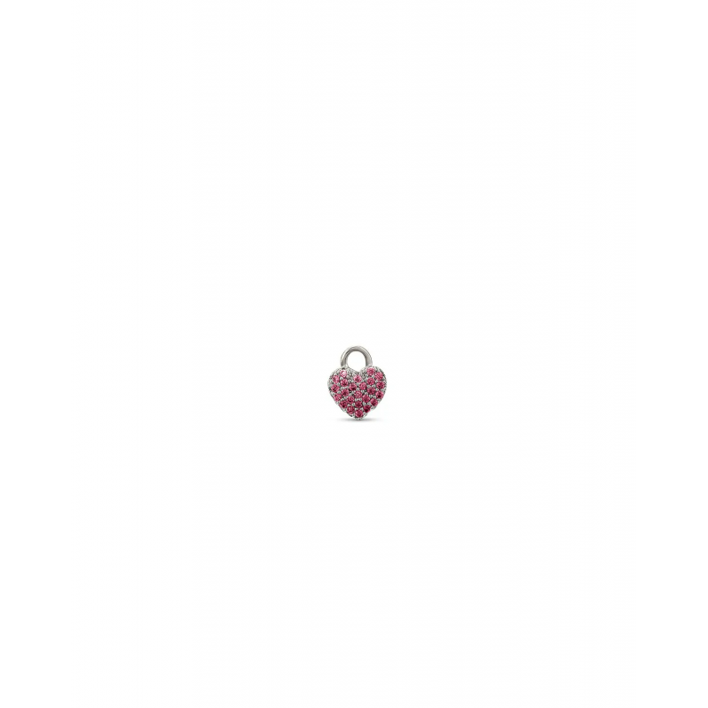 Charm a forma di cuore piccolo, color argento, con zirconi rossi.